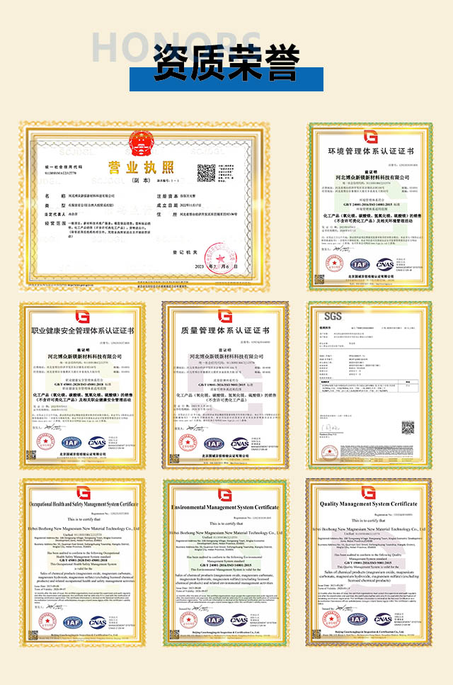 河北博众新镁新材料科技有限公司成立于2022年11月,其前身为邢台博众新材料科技有限公司,已有7年建厂历史。我们是专业生产轻质氧化镁、活性氧化镁、氢氧化镁的厂家,附加产品碳酸镁、氧化锌、硫酸镁等和镁相关的产品。针对不同行业、不同客户需求“量身定做”各种专业氧化镁,现在已经开发出300多个品种,应用到100多个行业、1000余家用户,广泛应用于医药、食品、取向硅钢、5G基站、电子陶瓷、手机玻璃、锂电池材料、橡胶、胶管、轮胎、试剂、催化剂、新能源汽车、航空航天、军工等高科技、新材料领域。公司可针对不同行业、不同客户需..